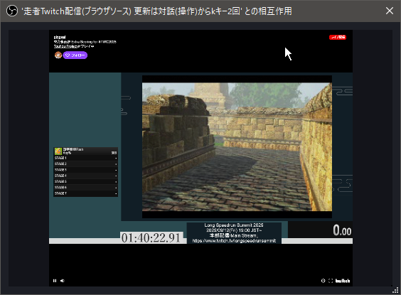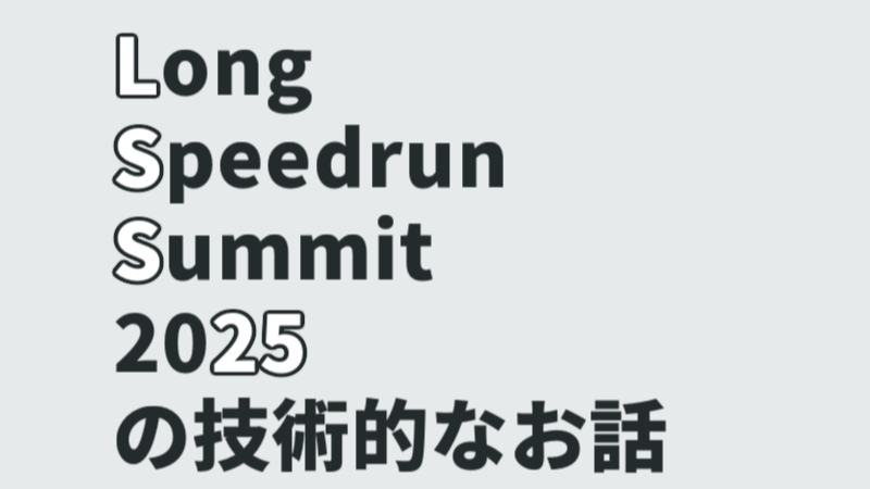 長時間RTAのイベントLong Speedrun Summit(以下LSS)運営のひとりping値と申します。この記事では、今年の9~10月に開催した『Long Speedrun Summit 2025』(以下LSS2025)の舞台裏で使っていた技術について、筆者が関わっていたやつを簡単に紹介します。