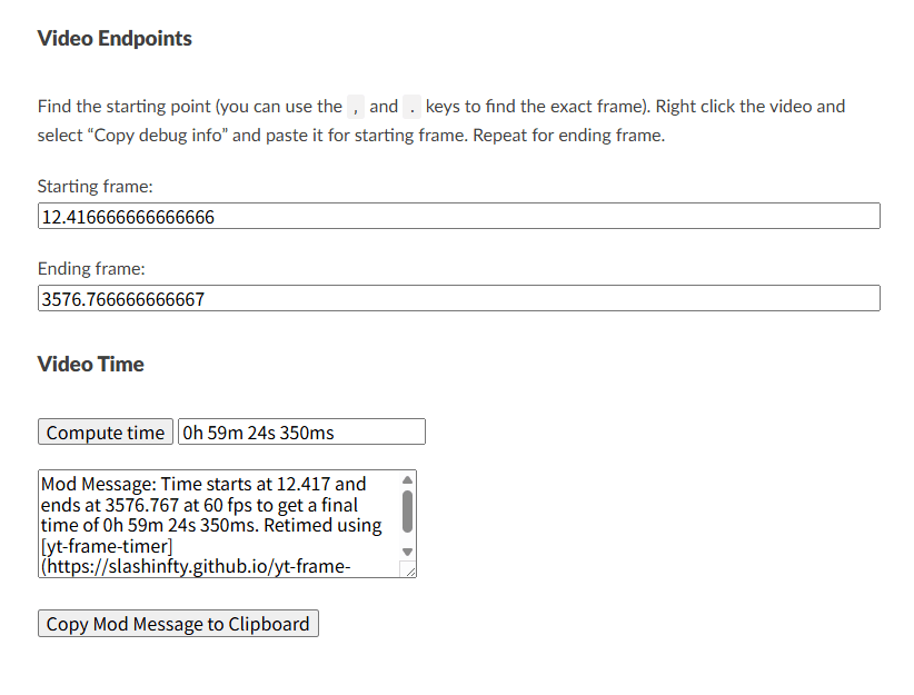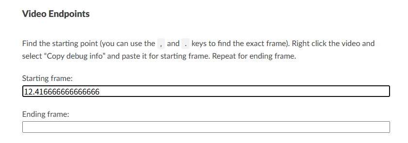 そして、YouTube Frame Timer の Starting frame に入力しましょう。
